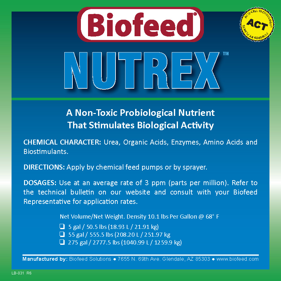NUTREX™ is a biological energizer blend of compounds that promote accelerated biological growth in the waste stream. One component of maintaining any biological system is providing the elements required by the microorganisms in a bio-complex that is conducive to their metabolic activity.