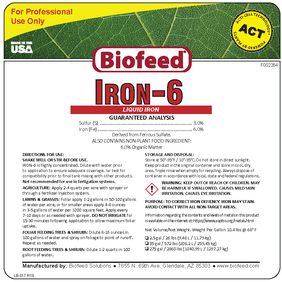 IRON-6 Delivers elemental iron in a molecular form to increase leaf absorption and translocation of this important micro-nutrient. IRON-6 promotes stronger plant growth, antioxidant production, enzyme activity for your lawn and soil, and chlorophyll production resulting in darker green leaf color.