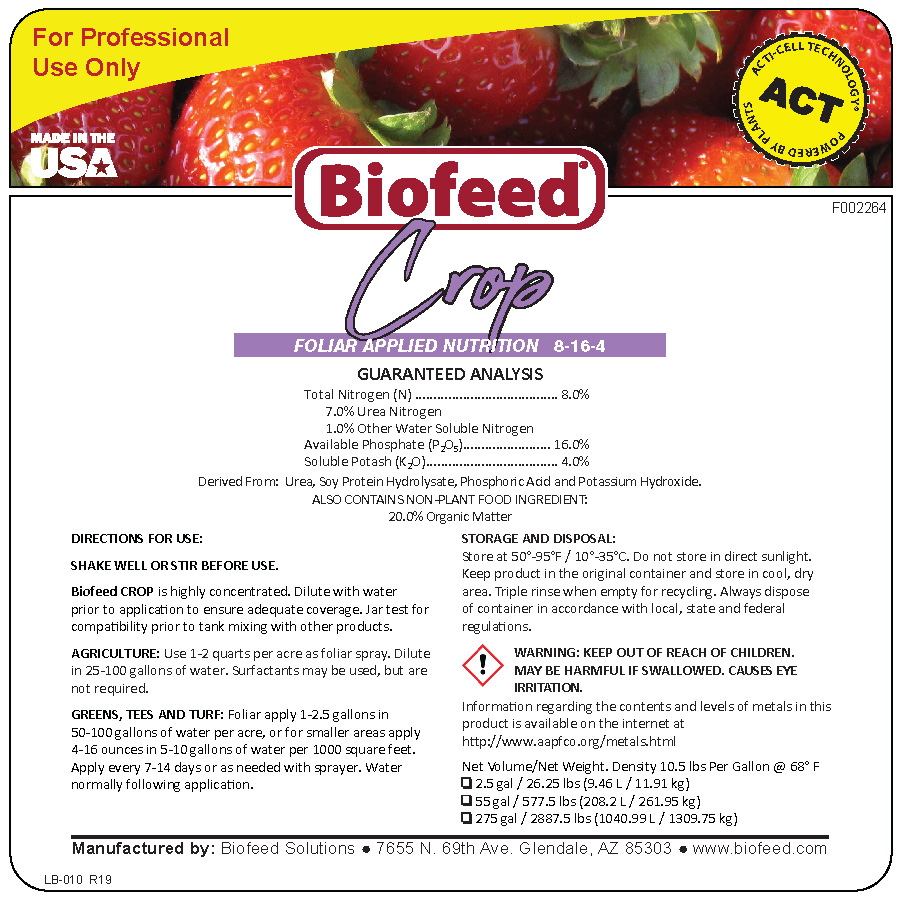 Biofeed CROP is highly concentrated. Dilute with water to ensure adequate coverage. Jar test for compatibility prior to final tank mixing with other products.